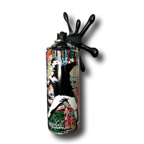 Brainwashing Never give up Graffiti Torn Spraycan Sculpture with Plastic Splash
