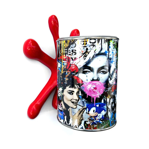 Brainwashing Icon of style Monroe Graffiti Torn Spraycan Sculpture with Plastic Splash